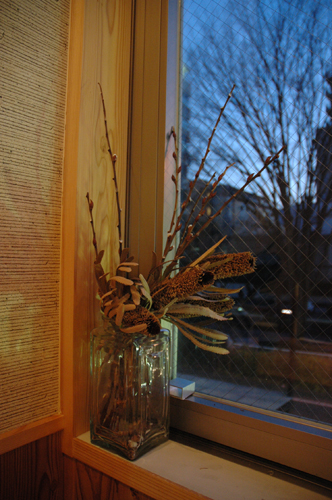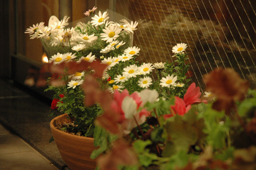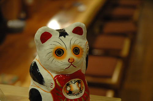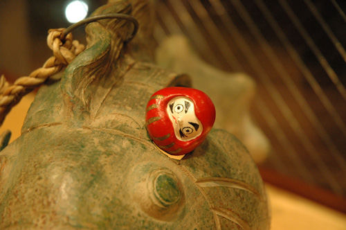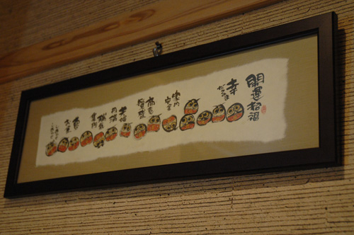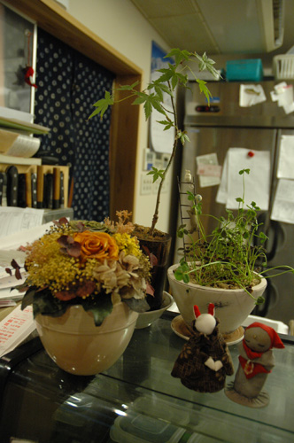 小だるま亭の名前のとおり、店内のあちこちに小さなだるまさんたちが飾られています。 他にも草花をディスプレイし、心地よい空間を作ります。
