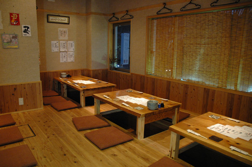 木の暖かみのある店内に、席数は全部で50席。 気さくなスタッフとお酒の話をしたい方は、カウンター(8席)。 仲間と和気あいあい呑みたい方はテーブル席(16席)。 ゆったりしたいなら座敷でどうぞ(26席)